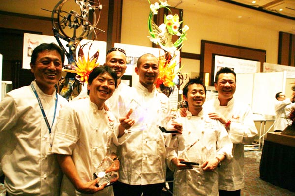 WPTC(World Pastry Team Championship)とは、2年に1度アメリカで開催されている製菓の国際コンクールです。各国三人一組からなるチームで製菓技術を競います。競技は2日間に渡り行われ、延べ13時間で、アメ細工やチョコレート細工に加え、計9種のガトーによる審査が行われました。