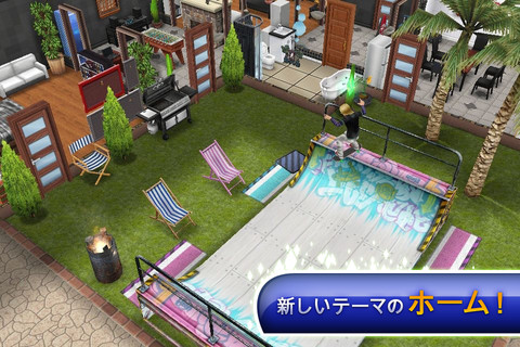 また、The Sims フリープレイはゲーム内に新たにヘアーサロンをオープンしました。プレーヤーの皆様には、化粧やタトゥー、メガネなど多数のアイテムで、シムをより個性的にカスタマイズいただけます。更に新しい家のデザインも追加され、和風の別荘、デザイナーハウス、そしてプロスケーターの夢の家を追加可能になりました。