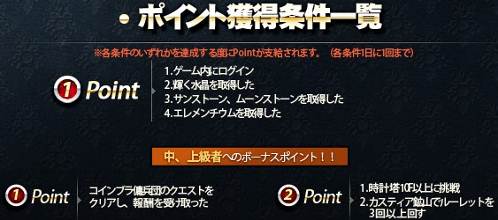 (1) 1Point項目の条件2、3、4はモンスターがドロップした該当アイテムを拾得する必要があります。