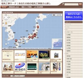 サイト閲覧者は、電気工事業者を日本全国の希望地域ごとに地図表示でき、