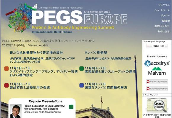 会議:「PEGS Summit Europe (タンパク質および抗体エンジニアリング学会 2012)」