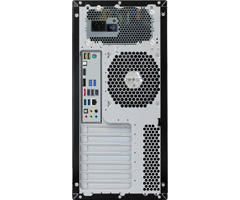 本体背面の12cmファンには、システムからの発熱量に合わせて回転数を3段階に切り替えられ、静音性と充分な換気量を両立しています。