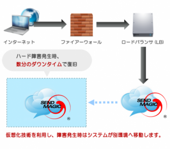 SENDMAGIC MRPは、自社が提供している超高速メール配信エンジンSENDMAGICが最適に動作するクラウドプラットフォーム環境をご提供し、SENDMAGIC SP保守及び仮想環境でロードバランサー等必要なネットワーク機器が標準装備されています。