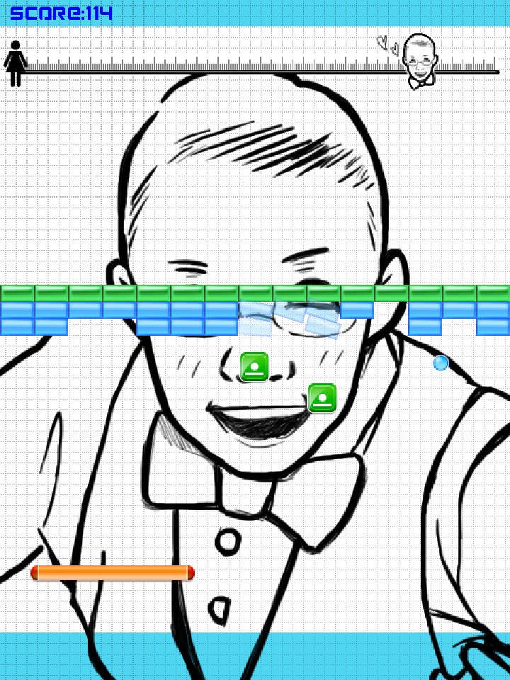 妙なおっさんが女の子に急接近!女の子にたどり着く前にブロック崩しで進撃を阻止せよ!