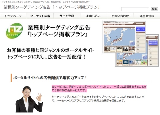 業種別ターゲティング広告『トップページ掲載プラン』