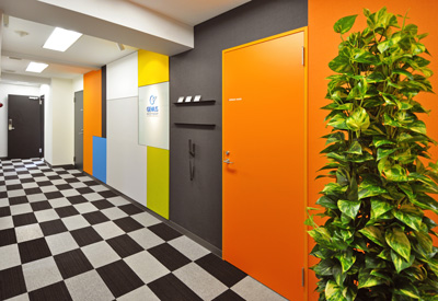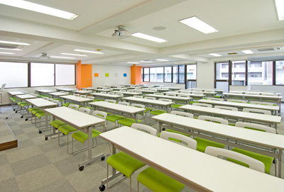 オレンジで統一されたセミナールームの壁は、参加者はもちろん講師にも、親しみやすさや、明るさ、楽しさを感じることができ、緊張感やプレッシャーを和らげ、居心地の良い空間を味わえる。また、緑で統一されたセミナールームの椅子は、落ち着き、安らぎ、自然を連想させることで、リラックス効果があり、自然体でセミナーに参加することができる。