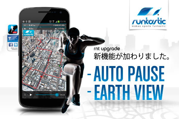 今月で全アプリ全世界総合計1千万ダウンロードを突破したランタスティックが提供する、アンドロイド用スポーツ計測アプリ「runtastic」と「runtastic pro」に加わった新機能「runtastic Earth View」。ランタスティックとGoogle Earthがチームを組むことによって可能になった、3Dビデオプレイバック機能を使えば、自分の走ったルートを、ヘリコプターに乗って上から追跡するような感覚で3次元疑似体験ができるようになります。また、runtastic Earth View起動中には、時間やペース、高度情報が上部に表示されます。