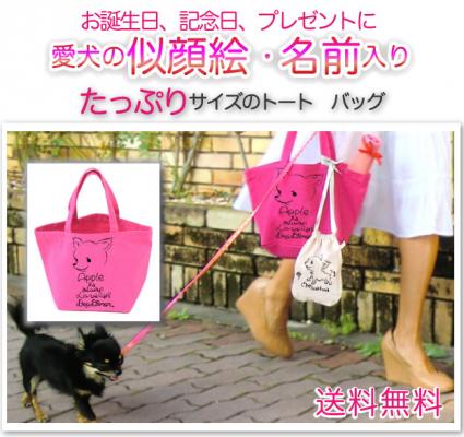 ・愛犬の似顔絵、メッセージ、名前が入るお散歩トートバッグ
