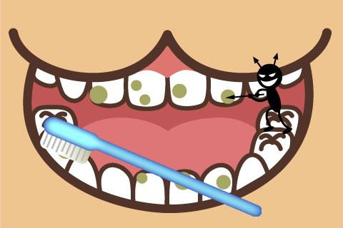 歯についた食べカスをばい菌達が狙っています。