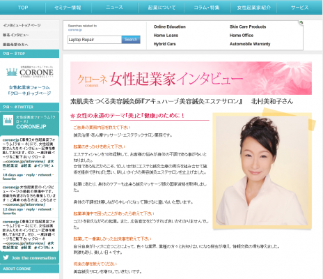 クローネ(女性起業家インタビュー):http://www.corone.jp/interview/
