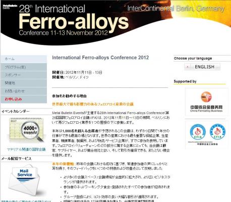 株式会社グローバル インフォメーションでは、皆様の利便性を図る為に、日本語、韓国語、中国語で「28th International Ferro-alloys Conference(第28回国際フェロアロイ会議:IFA)」の情報を提供するとともに、会議の参加のお申し込みを承っております。