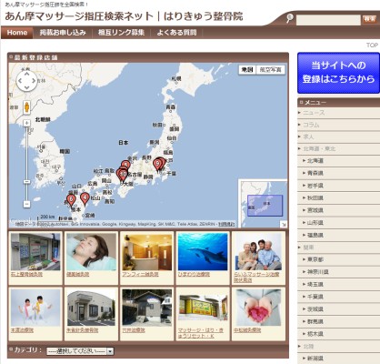 サイト閲覧者は、あん摩マッサージ指圧を日本全国の希望地域ごとに地図表示でき、