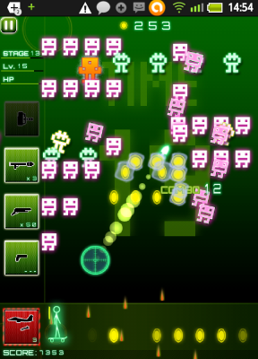 本作はシューティング要素を取り入れたディフェンスゲームとなります。数種類の火器を適切に使いこなして、画面上部から攻めてくる侵略者たちを全滅させる事が目的で、キャラクター(陣地)のHPが0になるとゲームオーバーとなります。