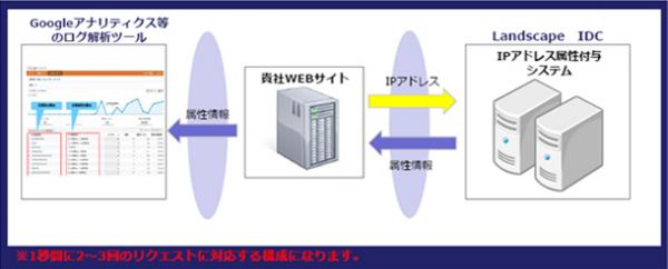 送られてくるIPアドレスデータに基づき、企業の属性情報を付与します。属性情報をお返しすることで、Googleアナリティクスなどのログ解析ツールで企業情報の抽出、分析が可能になります。