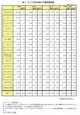 本調査におけるゴルフ用品とは、ゴルフ用品取扱関連企業が生産・販売を行う、個人消費者向けのものをさす。自社ブランド商品の出荷を対象とし、「OEM請負分」は対象外とする。