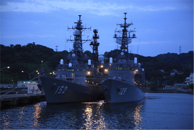 深淵な港に重厚な気配漂う海上自衛隊の艦船群も間近に迫ります。