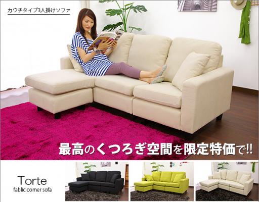 ・布張りカウチソファー3人掛け/Torte /29,800円