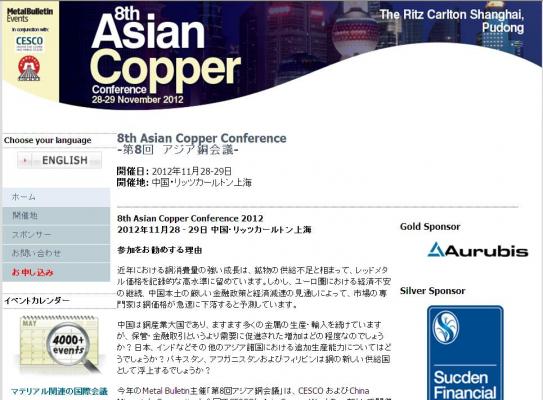 株式会社グローバル インフォメーションでは、皆様の利便性を図る為に、日本語、韓国語、中国語で「8th Asian Copper Conference 第8回アジア銅会議」の情報を提供するとともに、会議の参加のお申し込みを承っております。