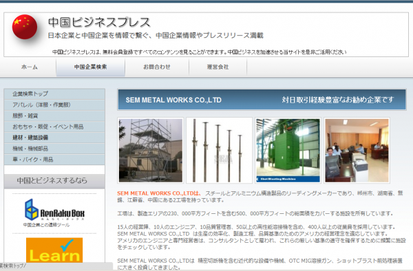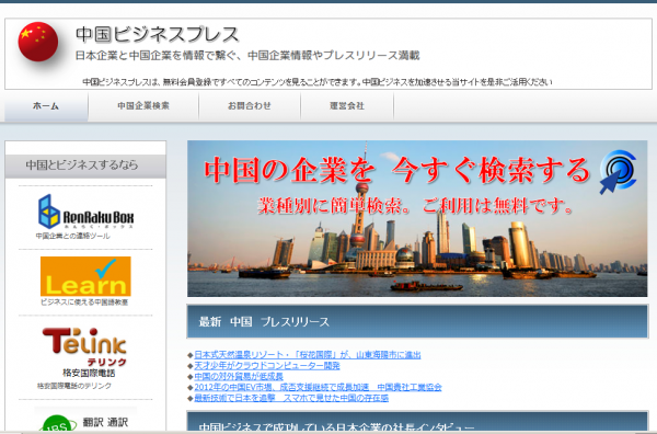株式会社SBJ(東京都中央区:代表取締役 中谷全宏)は、中国企業を日本語で検索できるBtoBサイト「中国ビジネスプレス」を立ち上げ営業を開始した。
