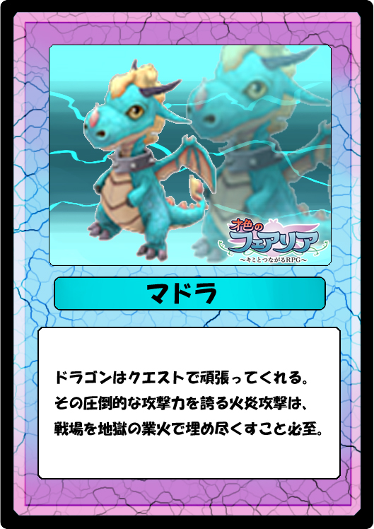 プレイヤーの頼もしい相棒「フェアリア」とは、ゲームの進行上とても重要な存在です。フェアリアとの「つながり」を大切に計画的に育成する事が、ゲーム攻略の最大の鍵となります。