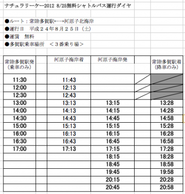 運行スケジュールは下記またはこちらでご確認ください! →http://www.ukaru.org/event5/access.html
