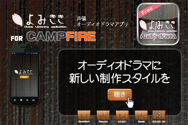 『よみきき』とは、従来のノベルゲーム(テキストのみ)に「声~プロの演技~」という付加価値をプラスした新しい形のアプリです。現在スマートフォン用のアプリとして提供されています。