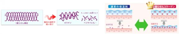 高い保水性を持つコラーゲンは、抽出の過程の熱などで破壊されてしまうと、ただのゼラチンとなってしまいます。