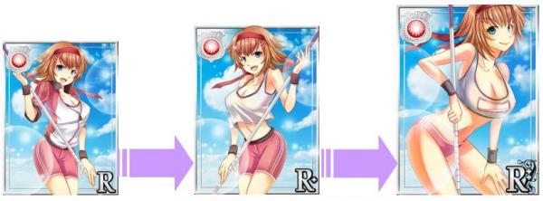 バトルやガチャで同じ種類のカードを集めて進化させると、カードの能力値とセクシー度がアップします。全てのカードで3段階進化が出来るので、最終形態までの進化を絵柄でお楽しみいただけます。