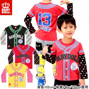 株式会社コージィコーポレーション(本社:大阪市中央区、代表取締役: 高林更次)の運営するベビー服・子供服ショップSTARVATIONS(スターベイションズ)が、BABYDOLL(ベビードール)ブランドの2012年新作アイテムを発表。ベースボールユニフォームをイメージしたフェイクプリントが可愛い☆ベースボール風レイヤードロンTを入荷しました。