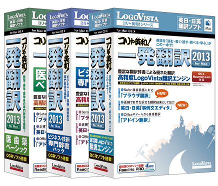 ● 「コリャ英和!一発翻訳 2013 for Mac ビジネス・技術専門辞書パック」(CD-ROM) 19,800円(税込)