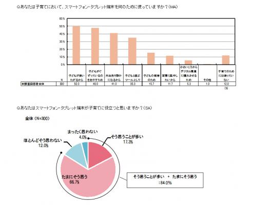 <子育てにスマホ・タブレットを使用しているママ300人への調査>