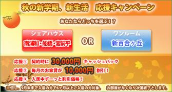 初期費用と格安家賃なシェアハウスandシェアハウス式ワンルームを運営するインターワオが応援する秋のキャンペーン!