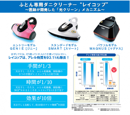RAYCOP [レイコップ]は、布団のダニ・ハウスダスト・細菌を徹底的に取り除くために開発された、「ふとん専用ダニクリーナー」です。