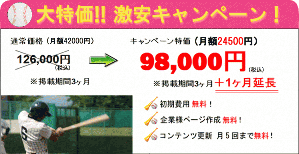 通常3ヶ月掲載で126,000円(月額42,000円)のところ、期間限定・大阪企業様限定で4ヶ月掲載98,000円(月額24,500円)でご提供致します。
