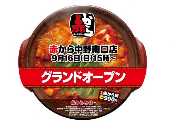 2012年9月16日(日)15:00、赤から中野南口店がオープンいたします。