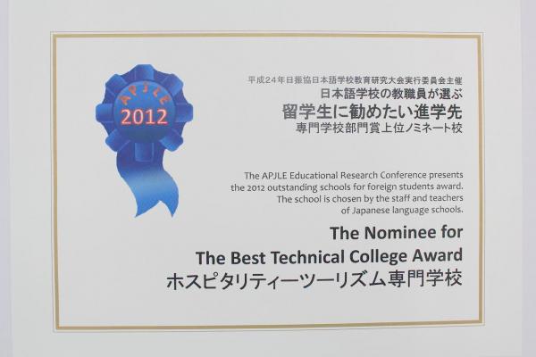 専門学校部門において「ホスピタリティツーリズム専門学校」が専門学校部門賞の上位に
