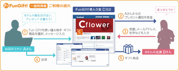 株式会社Real iD(本社:東京都新宿区、代表取締役社長:鈴木宏一)は、Facebookを活用したソーシャルギフトソリューション「FunGift!」の提供を本日より開始いたします。Facebookページを持つ企業様は「FunGift!」を導入することで、『ファンが友達に自社商品をギフトとして贈るサービス』をFacebook上でカンタンに展開することが出来ます。