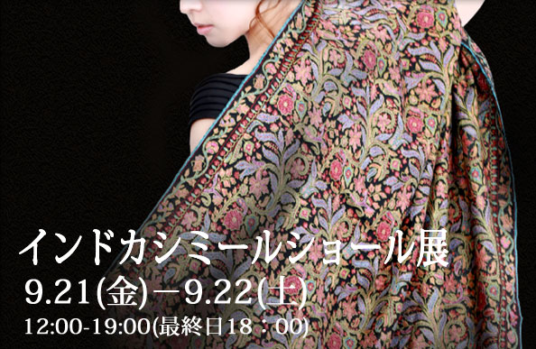 今年のインドリームのコレクションは、伝統のカシミールショールに加え、最近の新しいトレンドを取り入れた刺繍ショールも加わりました。非常に充実したコレクションとなりましたので、この機会にぜひご高覧いただきたく、表参道にて9月21日と22日の2日間にカシミールショール展を開催いたします。