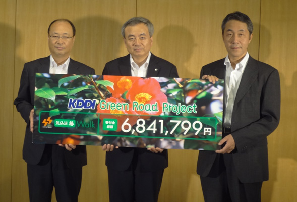 KDDIと沖縄セルラーは、2012年9月6日、宮城県気仙沼市役所にて、「au Smart Sports気仙沼椿Walk」の寄付金贈呈式を開催し、過去最高額の6,841,799円を「気仙沼市東日本大震災復興支援寄附基金」に寄付しました。