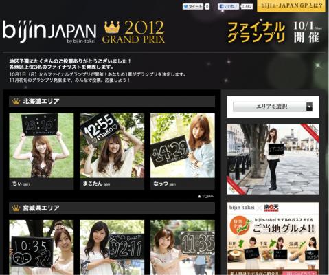 『bijin-JAPAN グランプリ 2012』は、5万人を越える全国の美人時計の中から選ばれた各地域の美人からグランプリを決めるユーザー投票企画です。