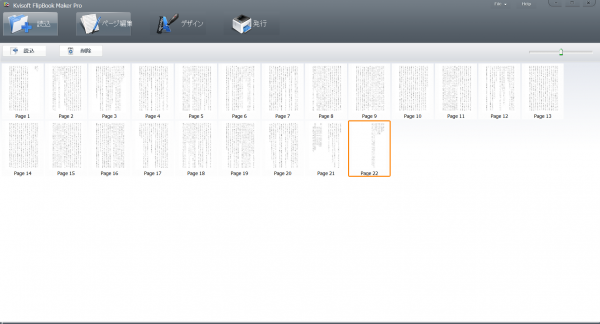 読み込んだ素材は、ページの順番を変えたり、ページの不要部分を削除することができます。
