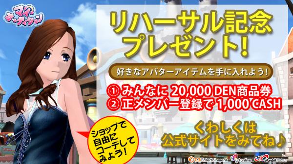 (2)9月19日(水)メンテナンス終了後に、ゲームマネー"20000DEN"と"1000CASH"をもれな