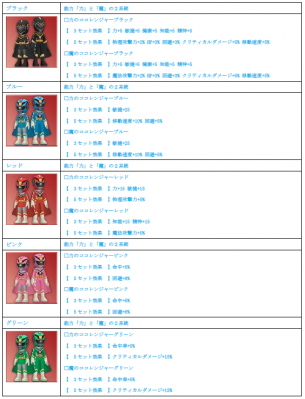 力のココレンジャー○○衣装 :最大HP+10% 最大MP+5%