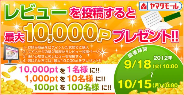 をコンセプトにヤマダ電機が運営する「ヤマダモール」が、9月18日(火)より、レビュー投稿で最大10,000ポイントが当たるキャンペーンを開催します。