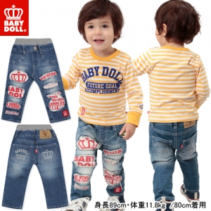 株式会社コージィコーポレーション(本社:大阪市中央区、代表取締役: 高林更次)の運営するベビー服・子供服ショップSTARVATIONS(スターベイションズ)が、BABYDOLL(ベビードール)ブランドの2012年新作アイテムを発表。大胆に加工された穴からメッセージ性のあるロゴがチラリと覗くおしゃれな1本♪ダメージデニムパンツを入荷しました。