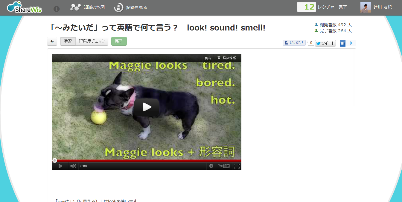 弊社は、動画や4択問題等から成る、短い学習コンテンツ同士がネットワーク状につながった「知識の地図」を特徴とする、社会人向けの無料の学習サイトShareWis(URL: http://share-wis.com)を運営しております。