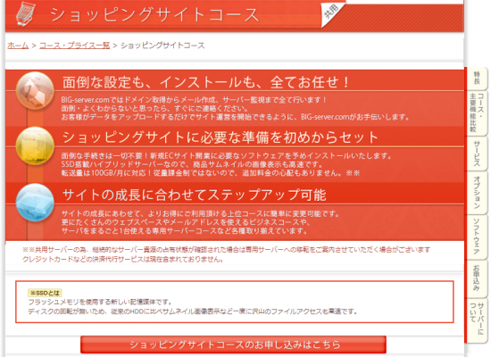 レンタルサーバー BIG-server.com ショッピングサイトコースをオープン