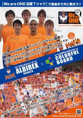 商品開発にあたっては、ソーシャル・デザインプラットフォーム「COLORFUL BOARD」上で、一般クリエイターから広くデザインを募集、サポーターのスコアリング(投票)によって受賞デザインを決定します。受賞したデザインはTシャツとして製品化され、アルビレックス新潟のホームゲームにて販売されます。