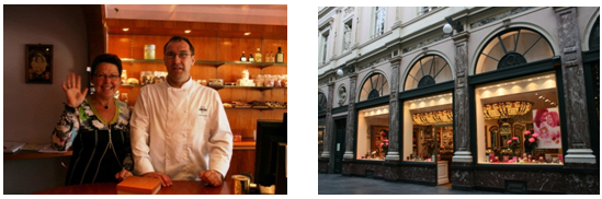 (写真左)訪問するショコラティエ、クリストフ・デ・グローブ (右)サンチュベールのショコラティエ