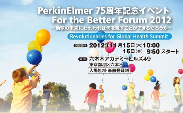 パーキンエルマージャパンの今年最大のビッグイベント「For The Better Forum 2012」~地球の未来にわれわれは何を残すことができるだろうか~と題し、六本木アカデミーヒルズにおいて11月15~16日の2日間にわたりフォーラムを開催します。